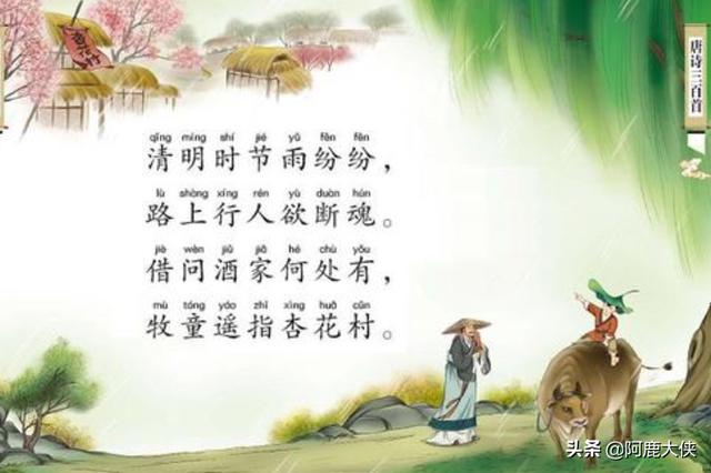 原文:清明时节雨纷纷,路上行人欲断魂。借问酒家何处有,牧童遥指杏花村。