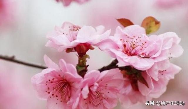 10、一株桃树,托起一团花瓣、像姑娘扬起的笑脸,粉红粉红,洋溢着青春的光彩。