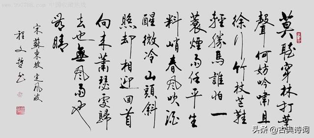 这就是苏东坡著名的《定风波》,从这样一件生活小事中,我们就能读出苏轼的潇洒与旷达。