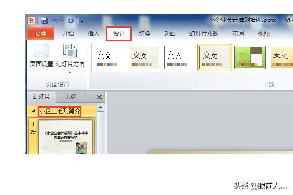 4点击节名“小企业准则简介”,切换到设计选项卡,选择一个主题。